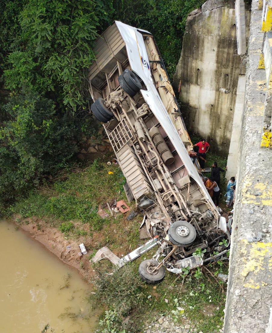 गिरीडीह से राँची आ रही तीर्थयात्रियों से भरी बस पुल के नीचे गिरा