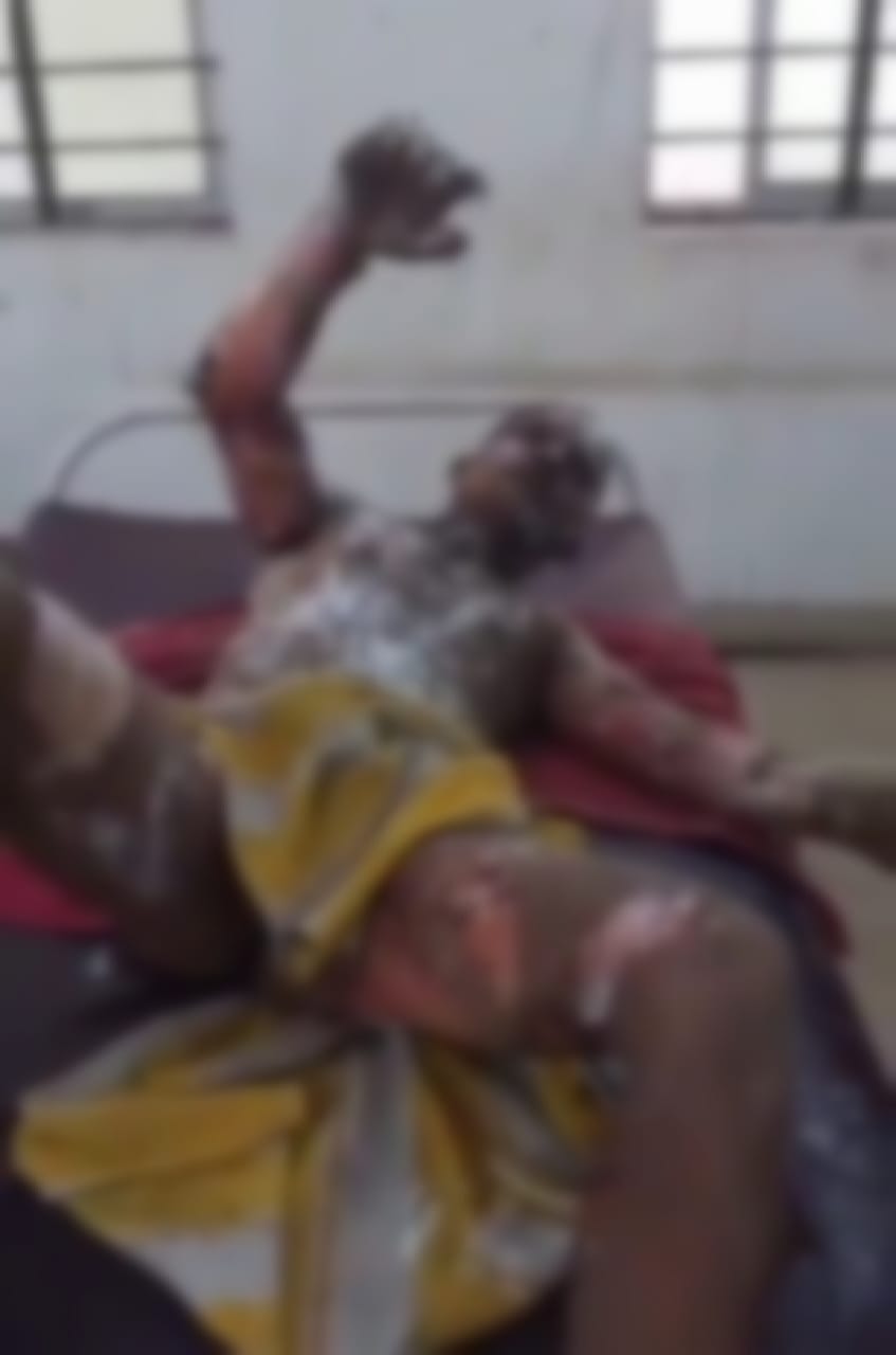 पुलिस के सामने अपने ऊपर केरोसिन छिड़कर आग लगा ली